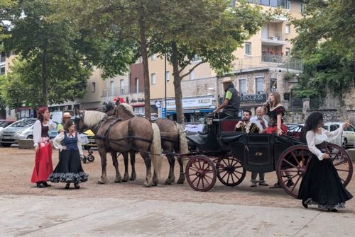 To promote the opening performance of Carmen, a beautiful vintage carriage, pulled by two horses, moved through the streets of the city while singers presented arias (and a choreographed segment by a local flamenco company) from the opera.